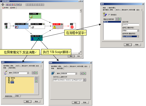 系統(tǒng)除了提供用戶可定制的流程模板功能外,在流程的每個步驟中都可以增加VB script解釋、即時消息觸發(fā)、簽名等功能。這些功能在我們企業(yè)的實(shí)際應(yīng)用過程中有非常大的價值.在Javelin中,當(dāng)一個審核流程完成(通過)后,系統(tǒng)會自動對被審核數(shù)據(jù)(如圖紙/工藝卡)進(jìn)行數(shù)字簽名,并且發(fā)出相應(yīng)的通知.