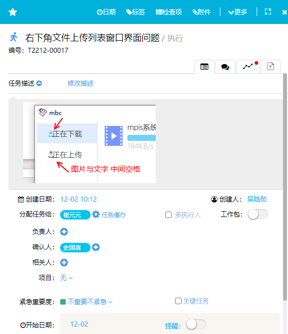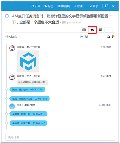點(diǎn)上圖中的“”頁簽即可顯示任務(wù)的動(dòng)態(tài)及交流頁面,如下圖所示: