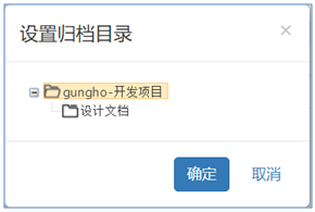 - 點(diǎn)擊上圖紅色框線區(qū)域的的“設(shè)置歸檔目錄”,系統(tǒng)彈出一個(gè)如下圖所示的項(xiàng)目文檔柜目錄選擇彈框。