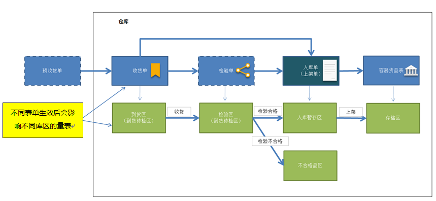 - 檢驗合格后,減<檢驗區(qū)>貨物數(shù)量,狀態(tài)=待檢。加<入庫暫存區(qū)/上架區(qū)>貨物數(shù)量,并且狀態(tài)設(shè)置為“合格”,如果檢驗不合格,同樣減<檢驗區(qū)>貨物數(shù)量,狀態(tài)=待檢。加<不合格品區(qū)>貨物數(shù)量,并且狀態(tài)設(shè)置為“不合格”如果要做二次檢驗的,就是“可疑”,這個需要配置。