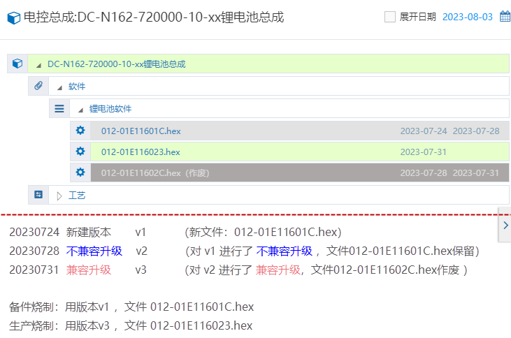 Mobox關于對數據版本的討論 2023/08/03 分類:產品中心 低代碼 實施方案 980 Mobox數據對象,是可以進行版本管控的,關于版本設置 兼容升級: 這個電控軟件 原先的版本被廢棄,直接采用當前新的版本 不兼容升級:這個新版本,只能在當前生產的電控總成里面用,以前的老的電控總成 是不能安裝到這個新電控軟件的;? 以前的電控總成將成為 備件燒制; 效果圖: 我們可以看到 v1 他是有時效性的,有效期到 20230728 標簽:低代碼方案 上一篇: Mobox低代碼(WMS)關于入庫作業流程的思考 下一篇: mogodb數據庫端口外網偵測不到