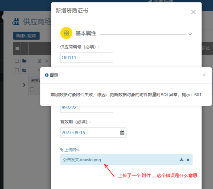 文件上傳:更新數據對象的附件數量時SQL異常,提示:601 2023/09/06 分類:產品中心 問題中心 923 問題描述:(20230906 發現) 若OIDateWebs 升級到 20230614 之后版本 ,而mobox數據對象是之前創建的,并且帶附件。存在OIDateWebs 升級后造成附件上傳異常問題 解決方法: 步驟1)下載OIDataWebS_R_20230905.zip 步驟2)更新OIDataWebS服務 步驟3)將數據對象里面的附件選擇先去掉 ,之后 ,重新添加附件選項 確定后,重新進入 ,將 附件 選項 重新 打上 標簽:問題 上一篇: 低代碼腳本開發-人員選擇 下一篇: 數據庫還原成功后(狀態為:關閉,正常),服務無法鏈接