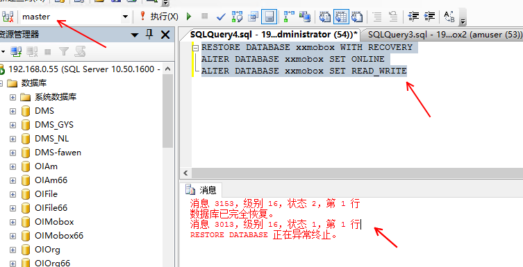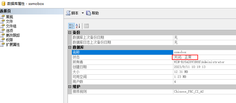今天遇到一個非常詭異的現(xiàn)象,xxmobox數(shù)據(jù)庫還原后提示成功,但這個數(shù)據(jù)庫無法被dns服務鏈接。經過分析發(fā)現(xiàn) xxmobox數(shù)據(jù)庫狀態(tài):關閉,正常
