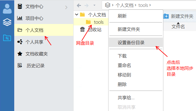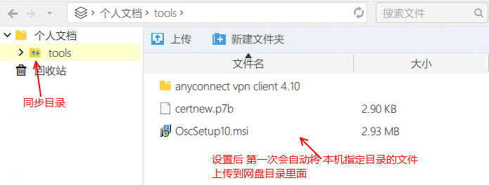 3)設(shè)置這個(gè)網(wǎng)盤(pán)目錄(tools)與本機(jī)電腦上指定目錄進(jìn)行文件同步(本機(jī)如:c:\tools)