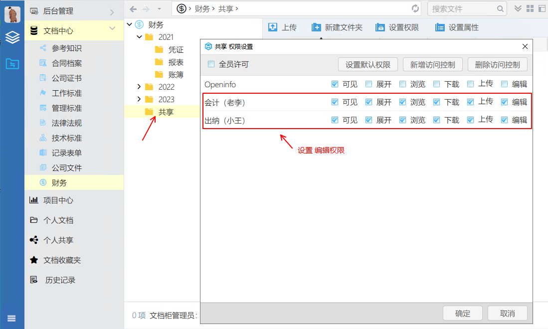 1、設置文檔柜的文件夾,啟用多人協同編輯功能;