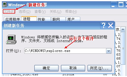 2、通過windows 任務(wù)管理器將 explorer.exe 重新啟動(dòng)起來