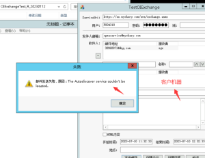 拿到EWS? (https://ex.XXXX.com/ews/exchange.asmx),確定這個(gè)地址可以在 客戶本機(jī)上能夠打開? ,如不能那就是服務(wù)器上網(wǎng)絡(luò)權(quán)限做了限制不允許訪問 導(dǎo)致以上問題