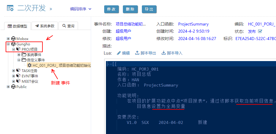 - 為“PROJ項目”開發一個自定義事件(目的獲取當前項目的Prj_id)