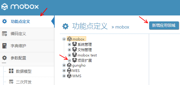 - 點擊 “功能點定義”- 新建領域 (項目擴展)