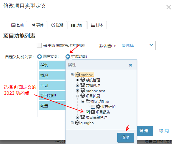 - 點擊 “功能點定義” – 在項目擴展– 新建 3023功能點
