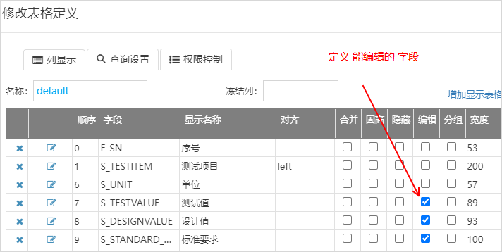 2)這個grid樣式中,需要定義,那些字段可以編輯