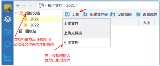 重點描述:被引用的文件的權(quán)限,與當前引用位置文件夾權(quán)限無關(guān)。其權(quán)限判斷通過該文件所在原始文檔柜所定義的權(quán)限